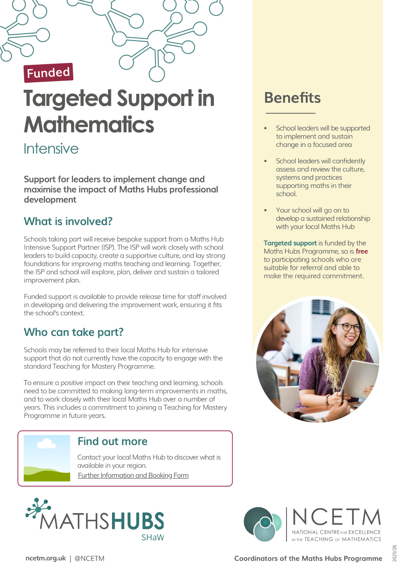 As a school leader, you shape the quality and sustainability of maths teaching. Support is tailored to your school’s needs and aims to strengthen leadership capacity and ensure effective implementation of your maths vision. Whether you are new to working with SHaW Maths Hub or currently participating in a Teaching for Mastery Work Group, we can support you to develop the teaching and learning of mathematics. All applications go through an approval process, with an opportunity to discuss with the TSM Maths Hub Link before starting the project.