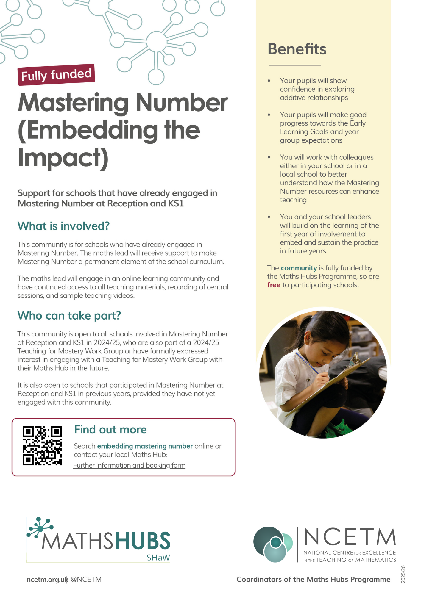 This community is for schools who have already engaged in Mastering Number. In order to be involved, you need to be engaged with a Teaching for Mastery Work Group for 2025/26.