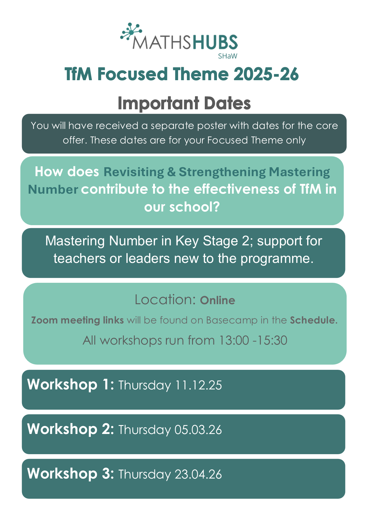 Maths leads and headteachers receive guidance to embed and sustain the programme across the school. Target Audience - Teachers & Leaders new to the programme
