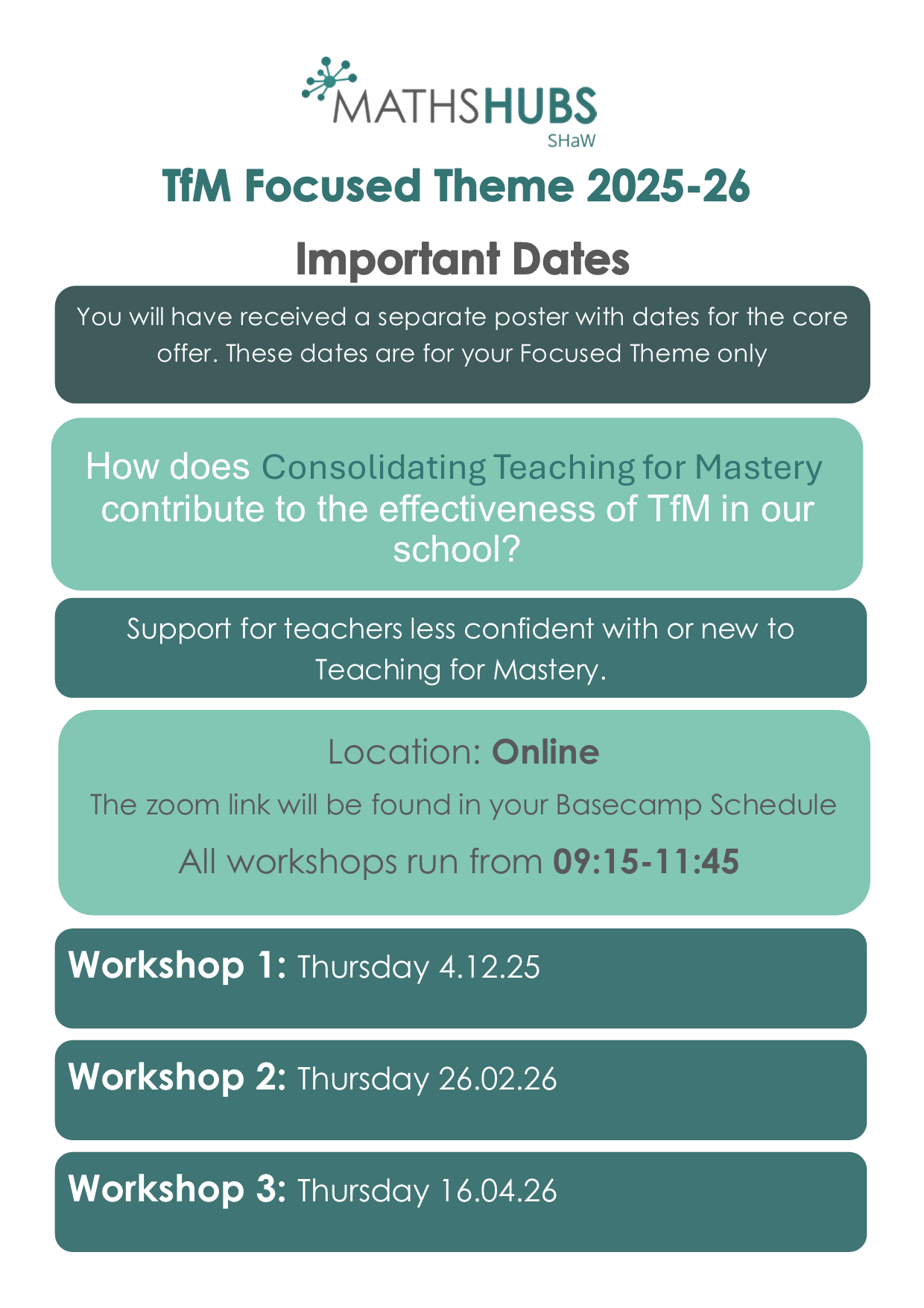 Target Audience – teachers or leaders new to Teaching for Mastery